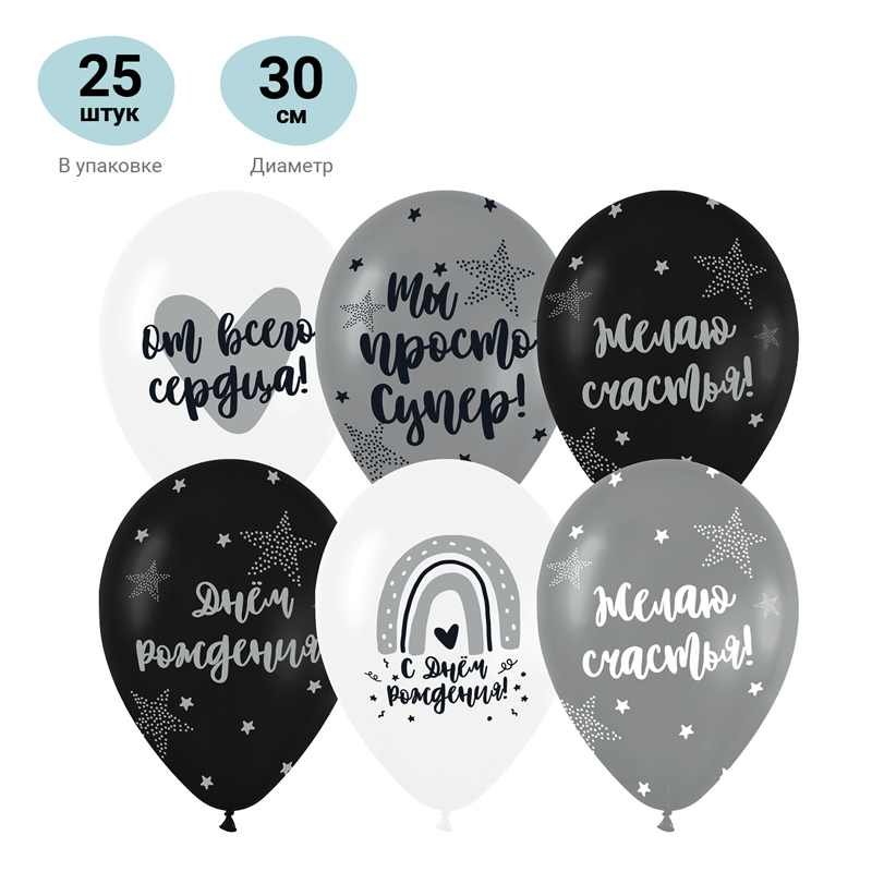 Набор латексных воздушных шаров с эффектом. В наборе представлены 25 шаров в различных цветах размером 30 см. Шарики из натурального латекса без постороннего запаха. Рекомендуем надувать латексные шары размером не более 30 см. В упаковке 25 шт. Поставляется в ненадутом виде. Это потрясающий нарядный декор, который всегда будет ассоциироваться с праздничным настроем, который несёт позитивный заряд. Хорошее настроение, благодаря такому оформлению, будет не только у детей, но и взрослых.