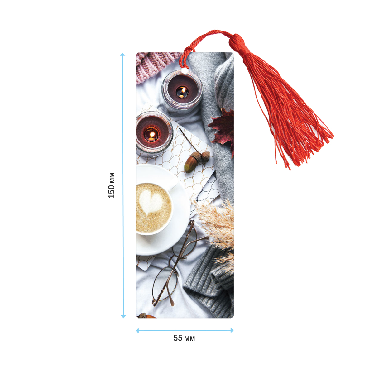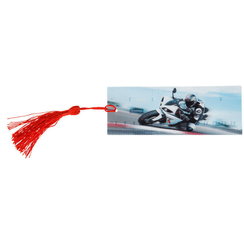 Закладка для книг с 3D- изображением. Имеется текстильная кисточка (декоративный шнурок). На обратной стороне нанесена измерительная шкала, что позволяет использовать закладку также в качестве линейки.