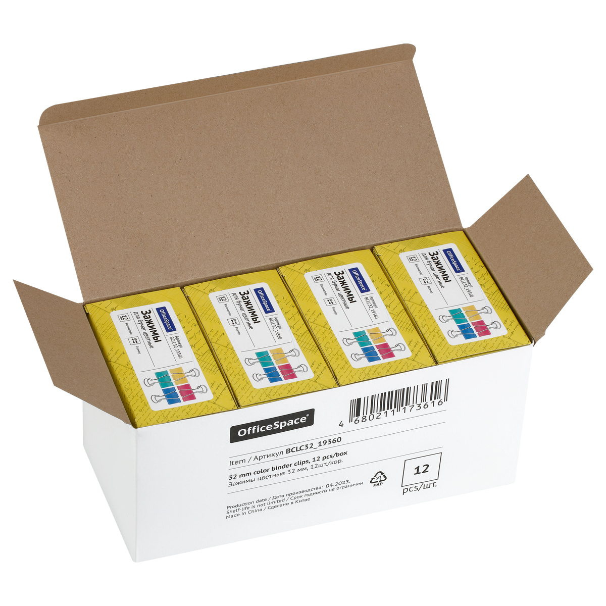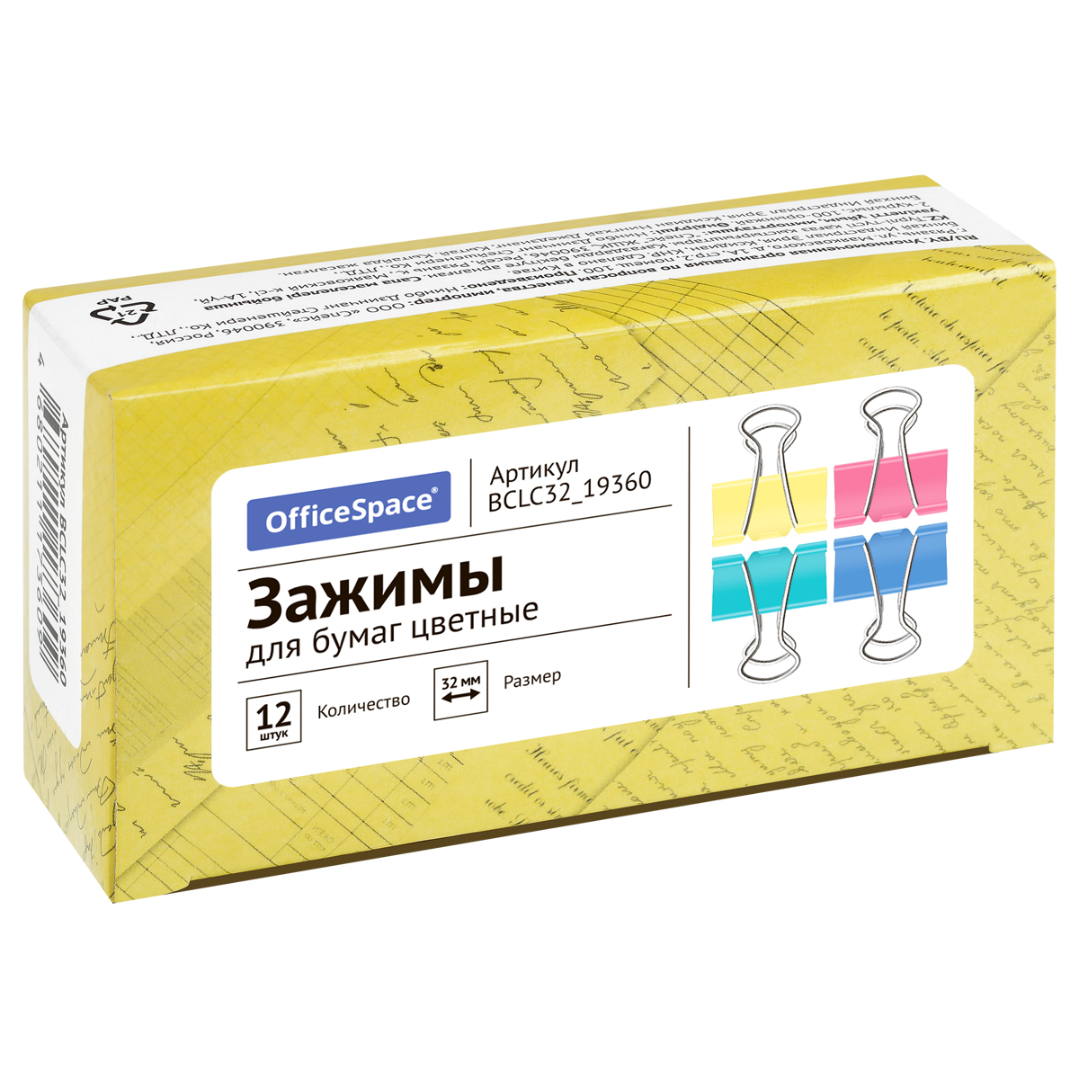 Для скрепления большого количества листов. Не деформируют бумагу. Цвет ассорти. 12 штук в коробочке.