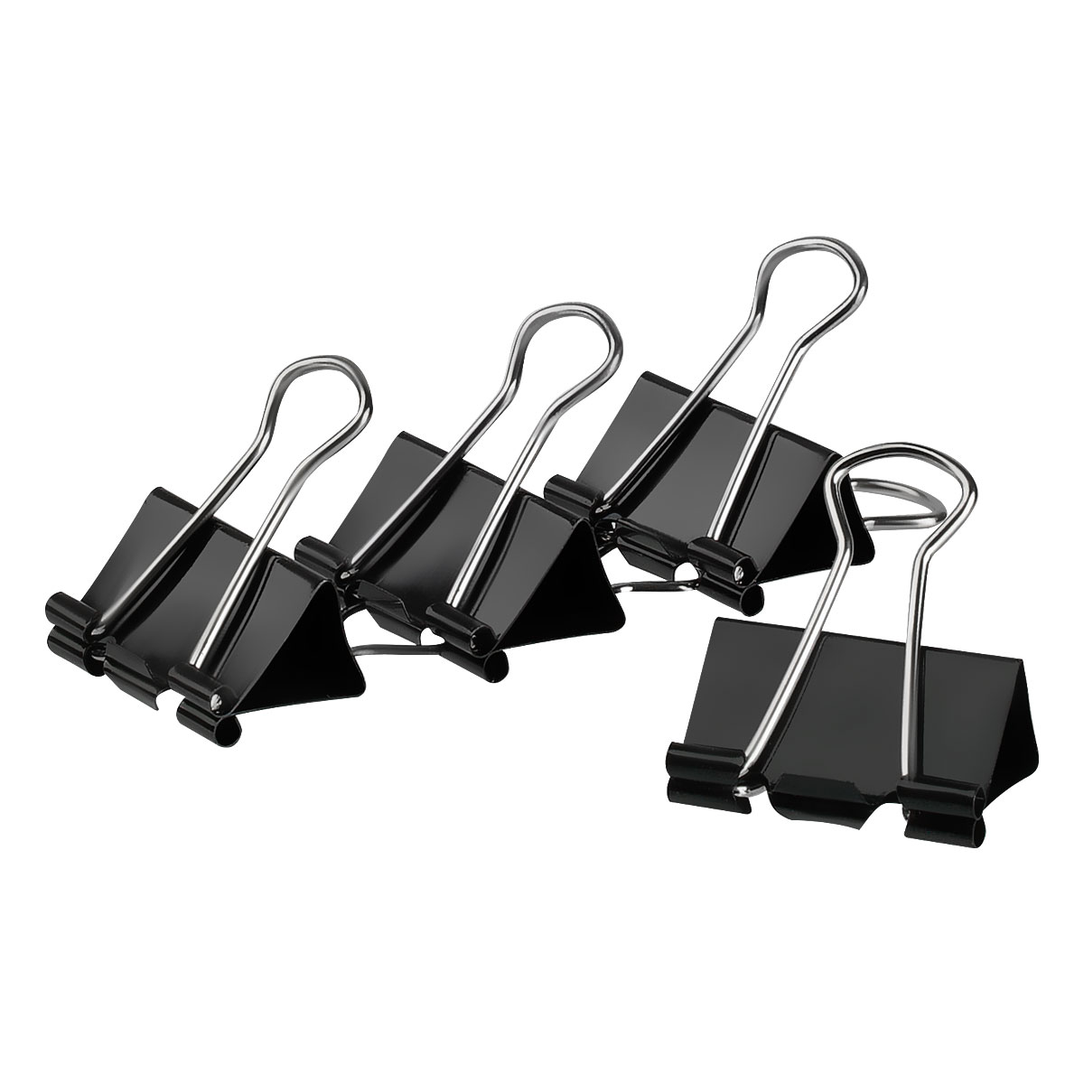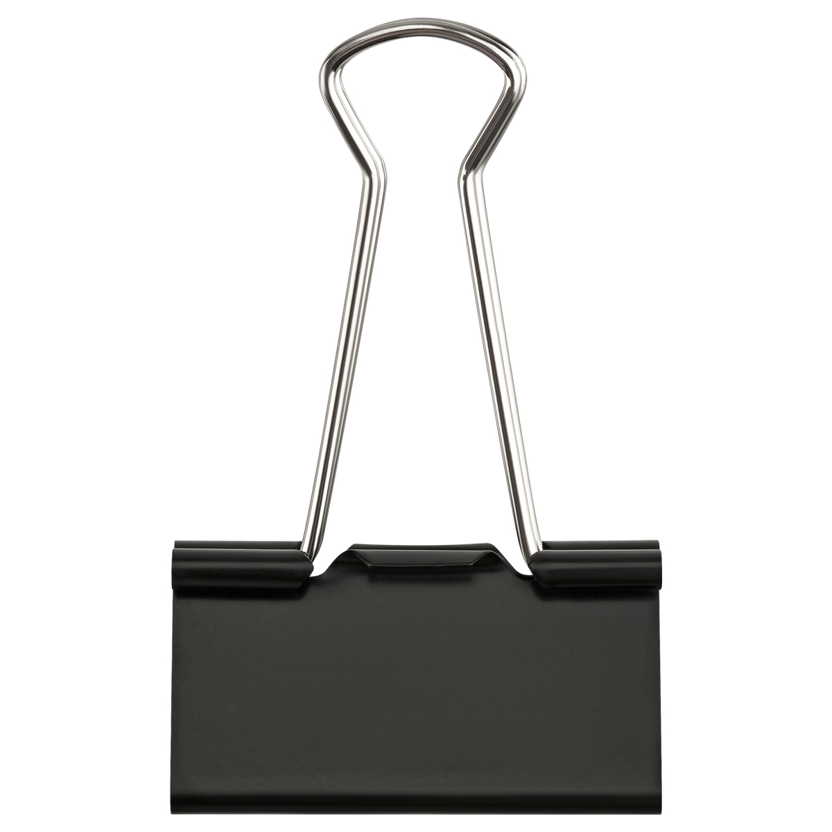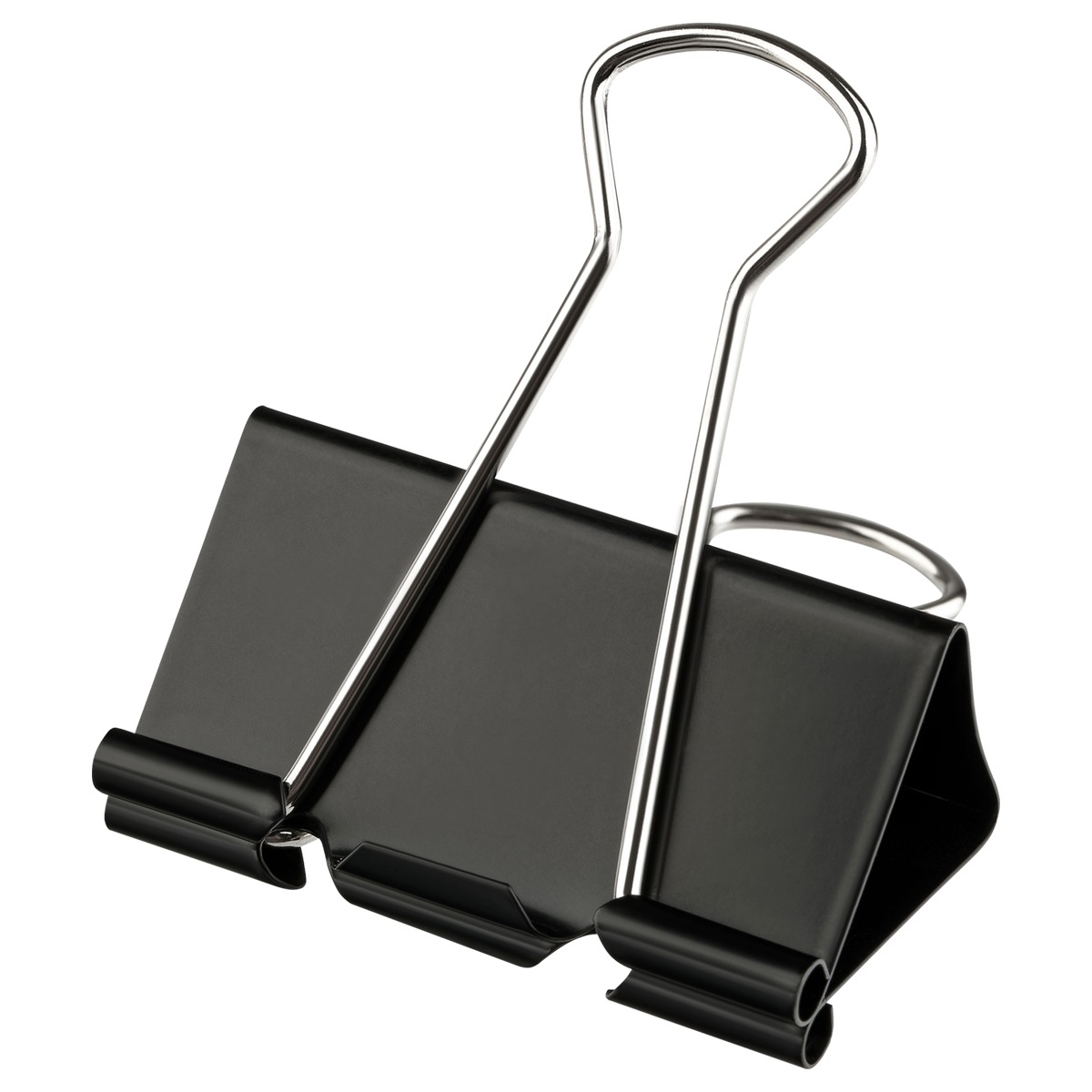 Металлический зажим для бумаг, корпус окрашен в черный цвет. Для скрепления большого количества листов. Не деформируют бумагу. Цвет - черный. 12 штук в коробочке.