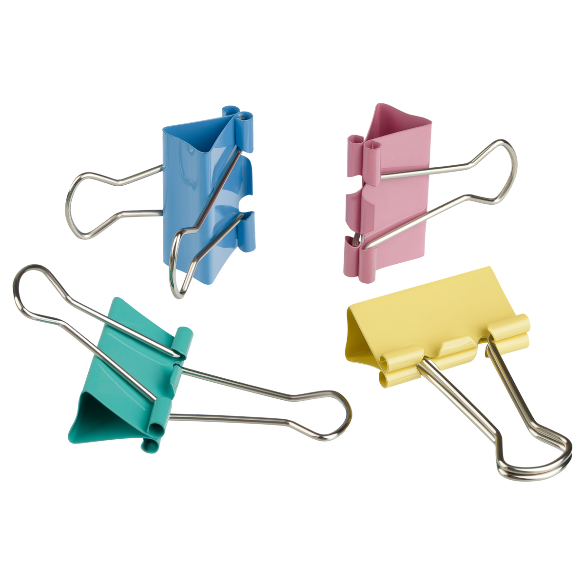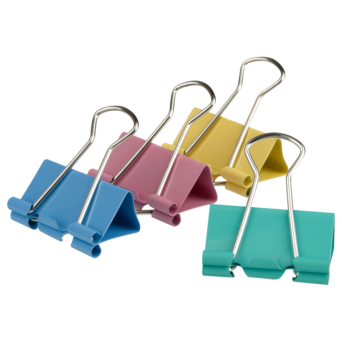 Зажимы выполнены в ярких цветах. Надежно скрепляют и не деформируют бумагу. Скрепляют до 60 листов, не оставляют на ней следов. Упакованы в картонную коробку по 12 шт. Цвета - ассорти.