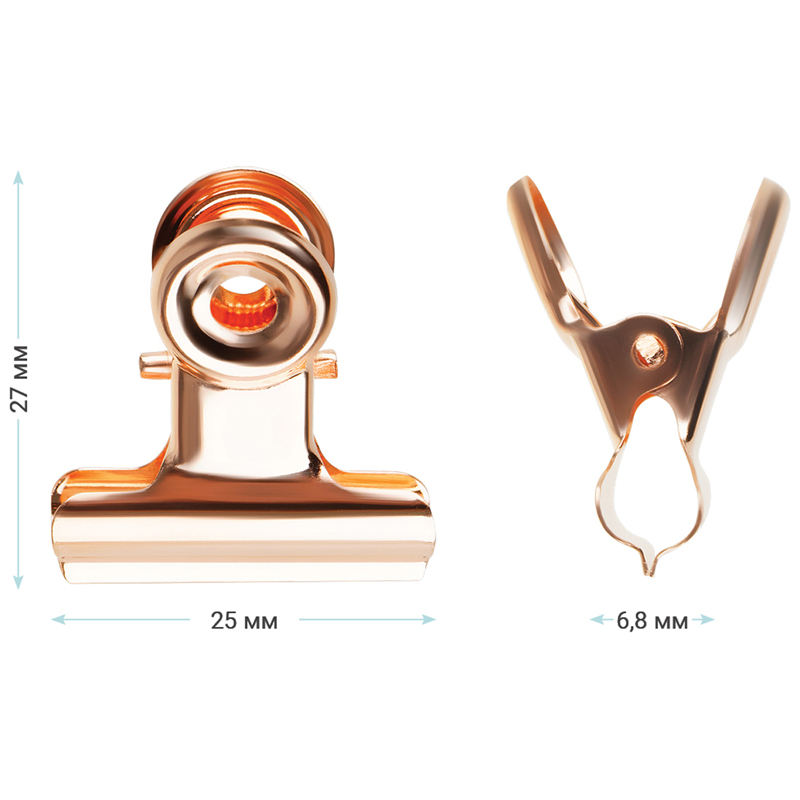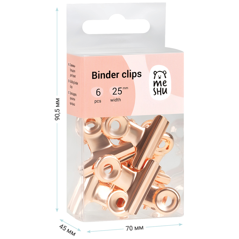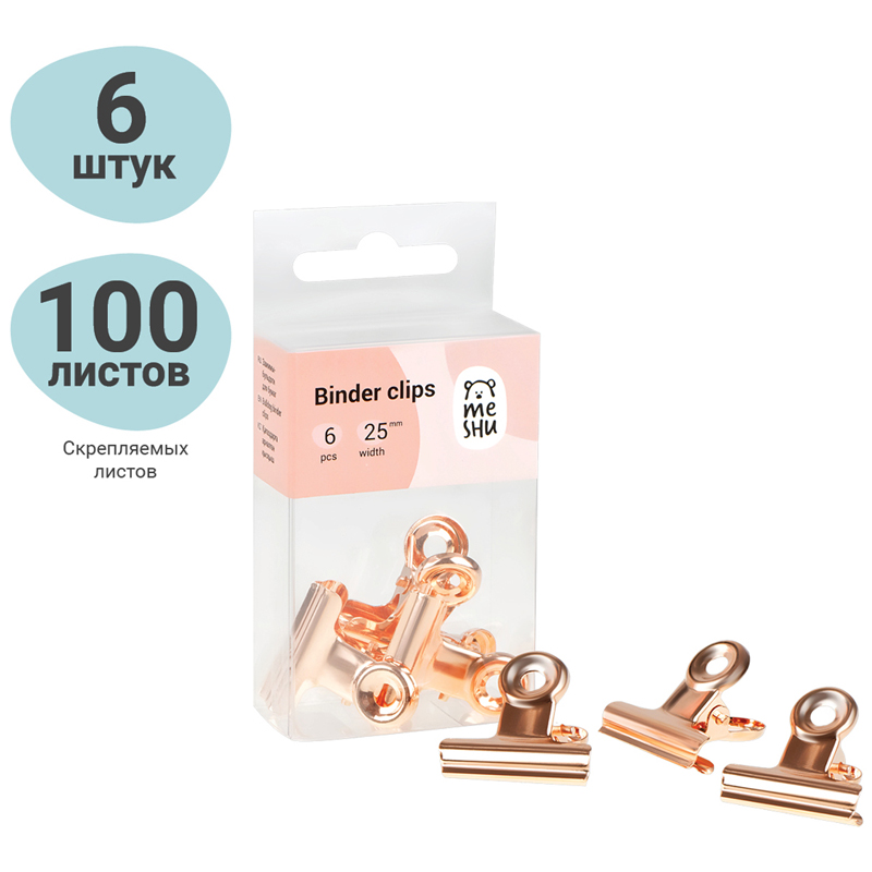 Зажимы-бульдоги для бумаг Meshu "Rose Gold" 25мм позволяют надежно скрепить большое количество листов.