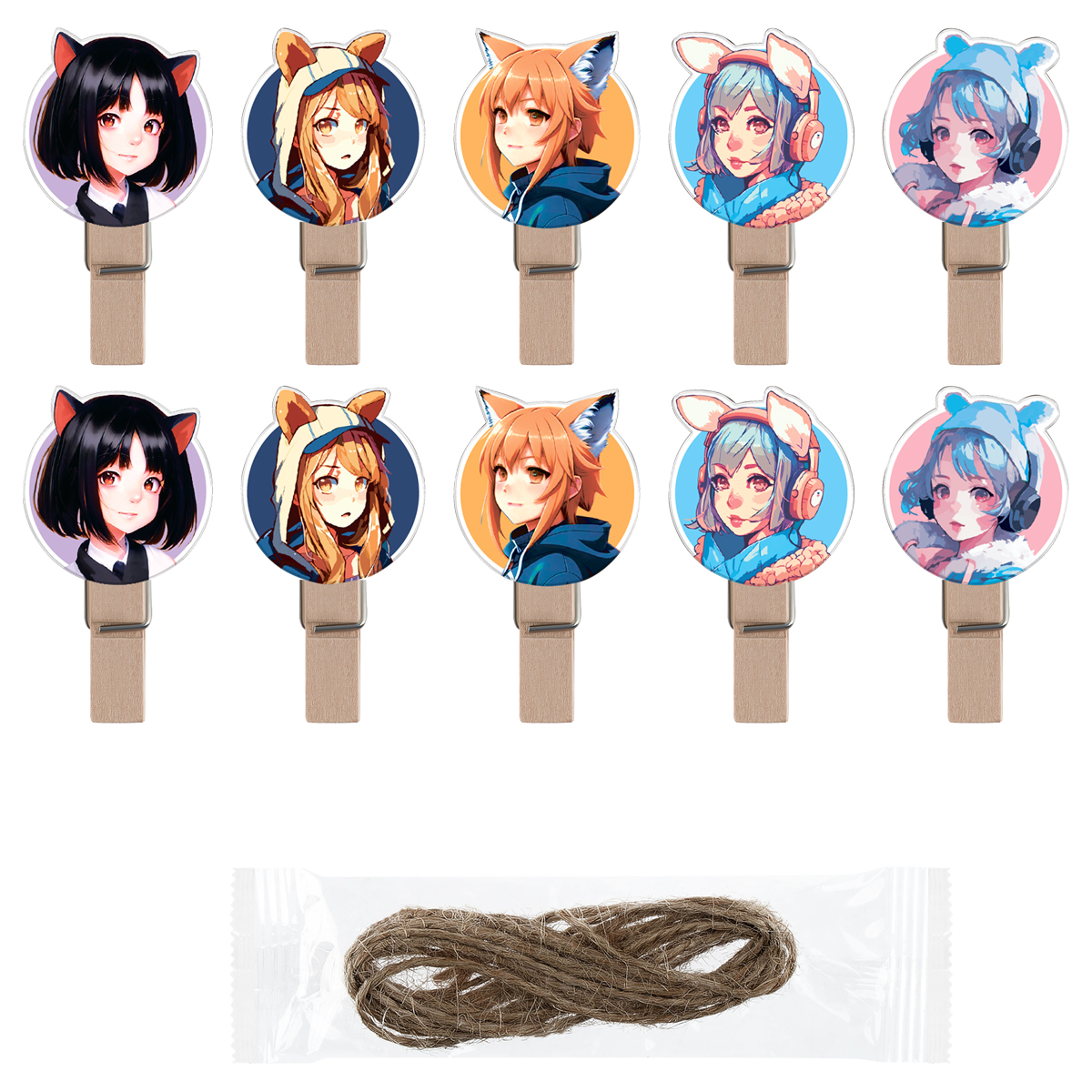 Деревянные зажимы для бумаг MeShu с веревкой в комплекте позволят оформить как рабочее, так и творческое пространство интересно. Яркий дизайн зажимов станет интересным элементом интерьера. Кроме оформления пространства, зажимы подходят для использования в творчестве как взрослыми, так и детьми. В комплекте 10 зажимов 5-ти различных дизайнов. Упаковка ед.товара: опп пакет с европодвесом; Количество в упаковке: 10 шт; Цвет: ассорти.