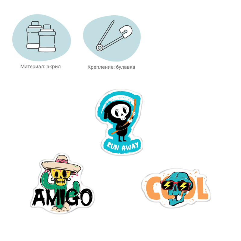 Значок из акрила - оригинальный и модный аксессуар, который преобразит любую вашу вещь. Нанесение изображения с помощью УФ-печати обеспечивает четкость и долговечность рисунка, а крепление-булавка позволяет значку надежно держаться. Эти милые значки созданы специально для того, чтобы поднимать вам настроение!