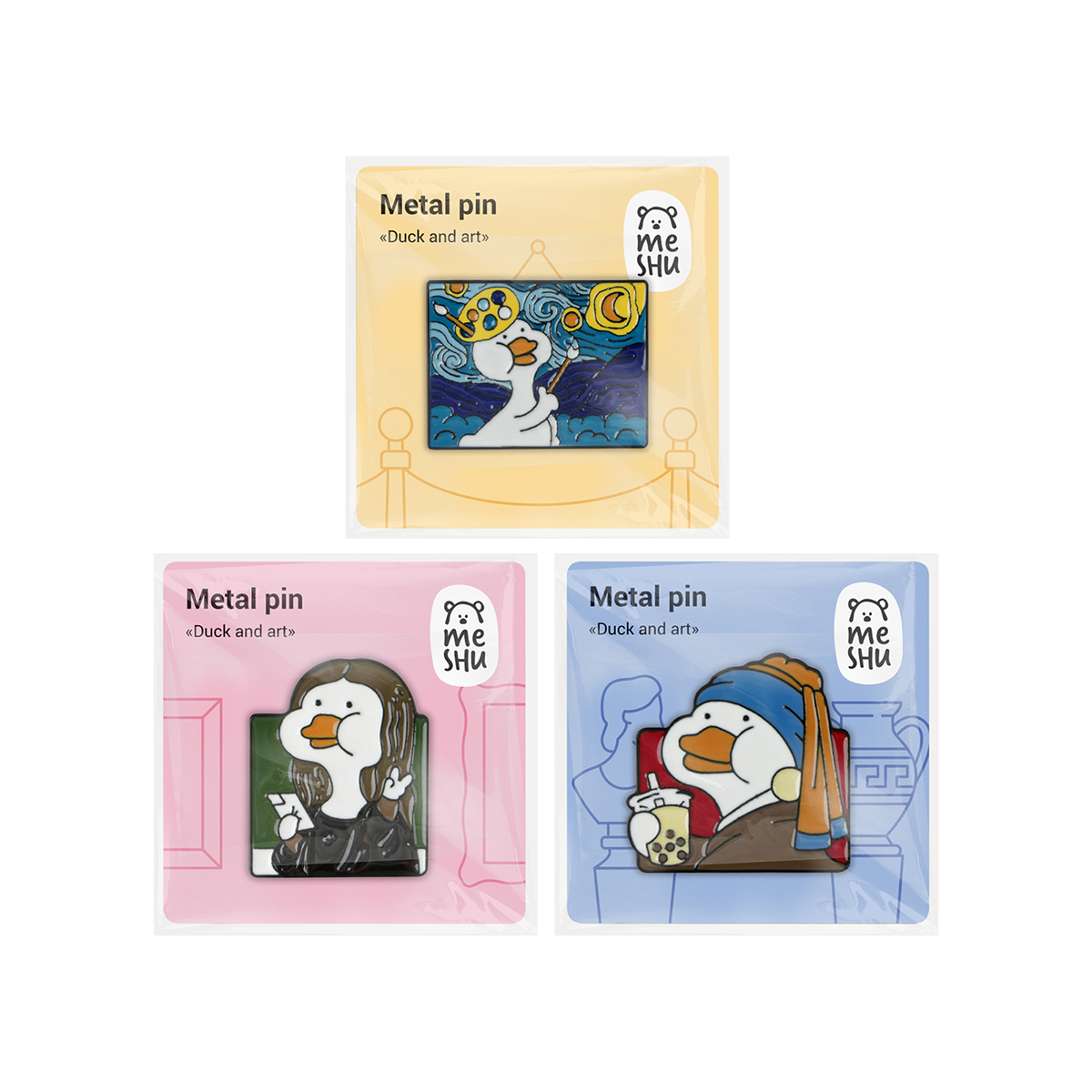 Набор металлических значков MESHU Ducks and art поможет украсить худи, джинсовку, косуху или рюкзак, придав вещи индивидуальности. В набор входят три аксессуара, которые сочетаются между собой. Металлические значки долговечны, не боятся влаги, солнечных лучей и механических повреждений. Крепление игла-цанга («бабочка») помогает надёжно зафиксировать аксессуар на одежде. Изделия из металла с эмалированным покрытием выглядят дорого. Они отсылают к популярному среди молодёжи стилю ретро, но при этом смотрятся актуально. Каждый значок из набора упакован в отдельный пакет с европодвесом и штрих-кодом.