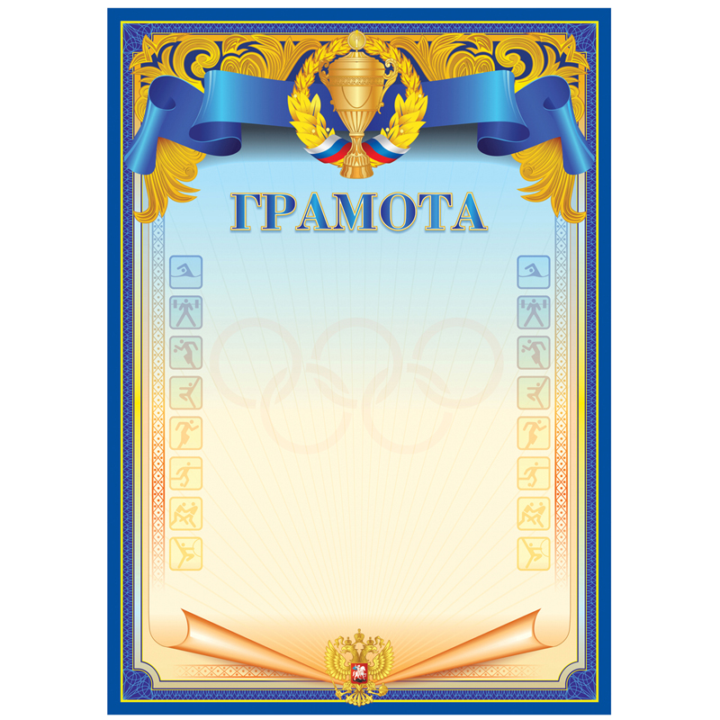 Бланк «Грамота спортивная» BG используется за достижения в спортивной идеятельности. Товар изготовлен из чистоцеллюлозного мелованного картона плотностью 170 г/м2, формата А4. Бланк выполнен в бежевом цвете и дополнен официальной государственной символикой. Товар подходит для печати на принтере. Поставляется в плотной прозрачной запайке по 30 шт., что обеспечивает удобство хранения и транспортировки. • Формат: А4; • Цвет: синий; • Материал: мелованный картон; • Плотность: 170 г/м2.