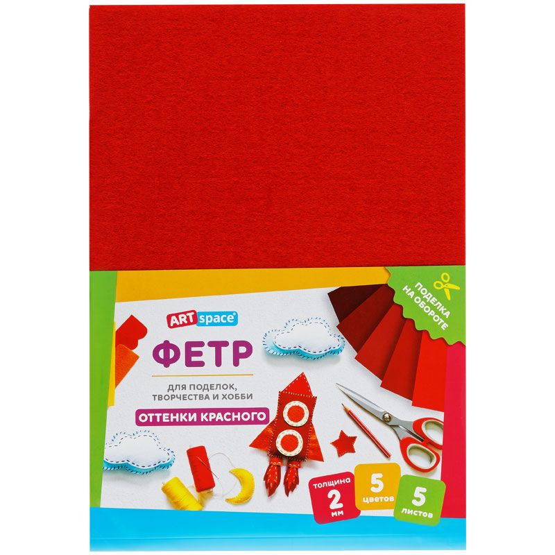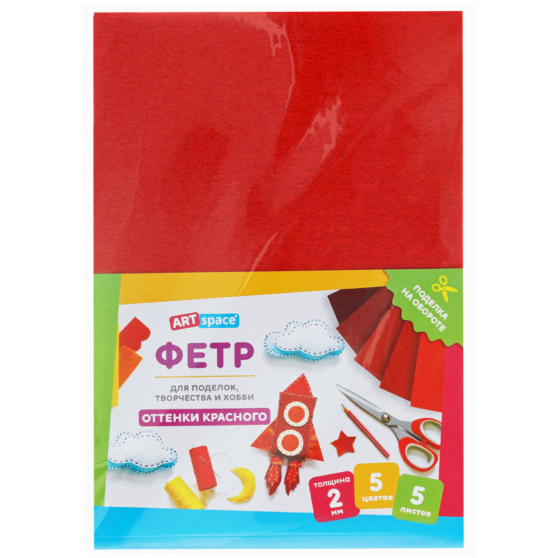 Фетр ArtSpace отлично подойдёт для пошива игрушек, книжек, украшений, сумочек, а также декора предметов интерьера. Мягкий и податливый материал хорошо держит форму, быстро склеивается и сгибается в любом направлении. Используется в различных видах творчества: шитьё, скрапбукинг, вышивка бисером, создание бижутерии. Богатая цветовая палитра порадует и детей, и взрослых. Создавайте неповторимые шедевры! Товар представлен в 5 листах, 5 оттенков красного. Размер: 210*297 мм. Толщина материала: 2 мм. • Размер: 210*297 мм; • Цвет: ассорти; • Толщина материала: 2 мм.